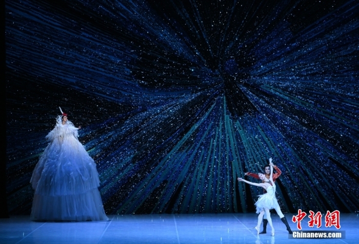 当地时间1月29日,华盛顿,中国中央芭蕾舞团贺岁舞剧《过年》在肯尼迪表演艺术中心首演。中新社记者 陈孟统 摄 改版自芭蕾经典《胡桃夹子》的中国贺岁芭蕾舞剧《过年》是中央芭蕾舞团将中国文化元素融入西方古典芭蕾进行创作的代表性作品之一。在肯尼迪艺术中心的舞台上,中央芭蕾舞团的舞者们展现了极具年味儿的庙会和喜迎新年的欢庆场面,包括独具中国特色的“十二生肖舞”“春联舞”“扇舞”“丝绸舞”等。